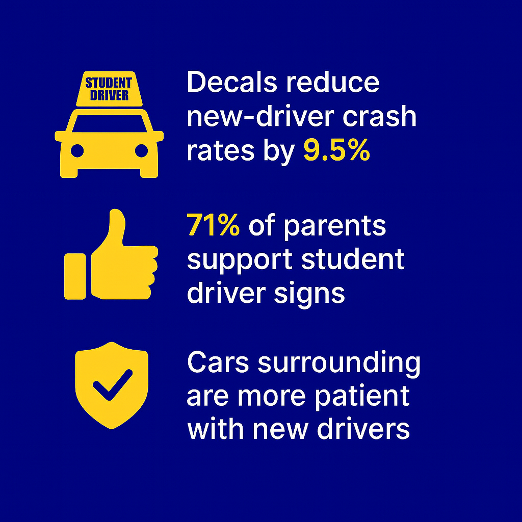 of drivers with student decals were less likely to experience honking or aggressive behavior during early driving lessons.